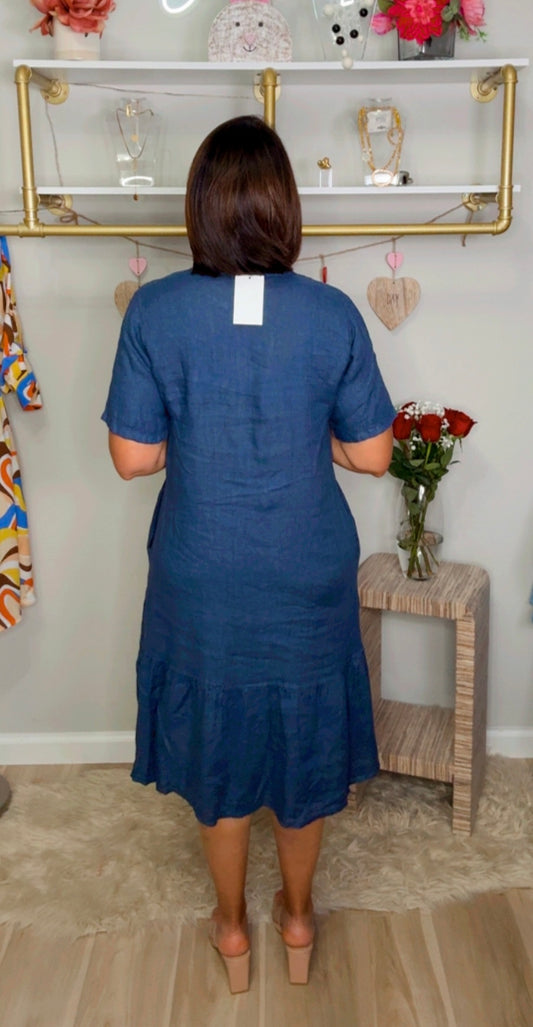Italian Linen Midi With Ruffle Hem