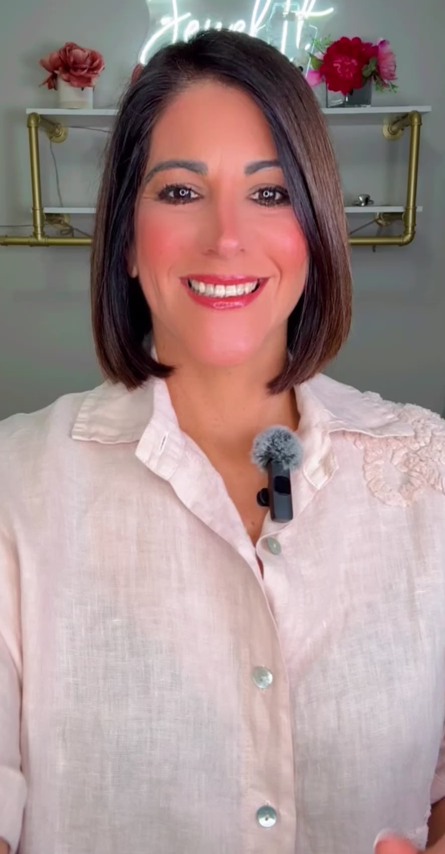 Italian Distressed Flower Linen Blouse