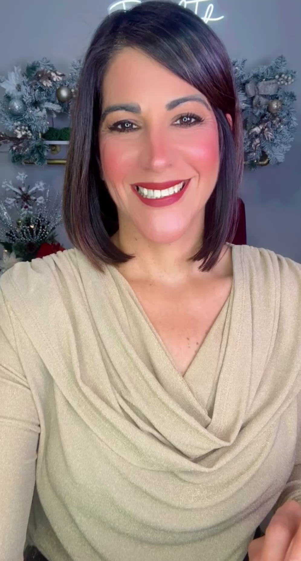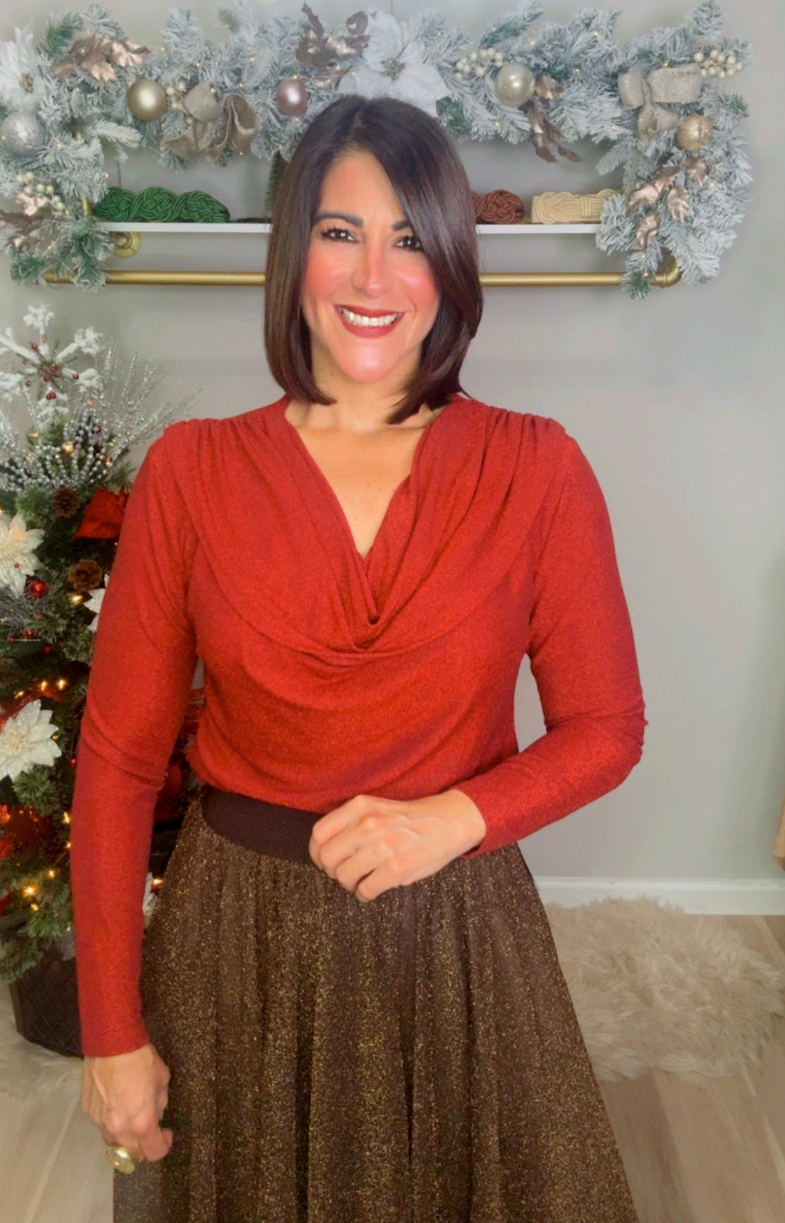 Italian Lurex Cascade Neck Blouse.