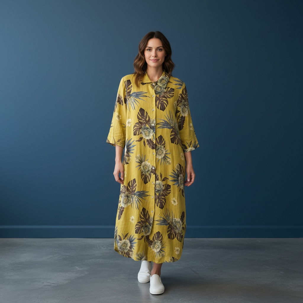 Italian Stamped Linen long dress shirt