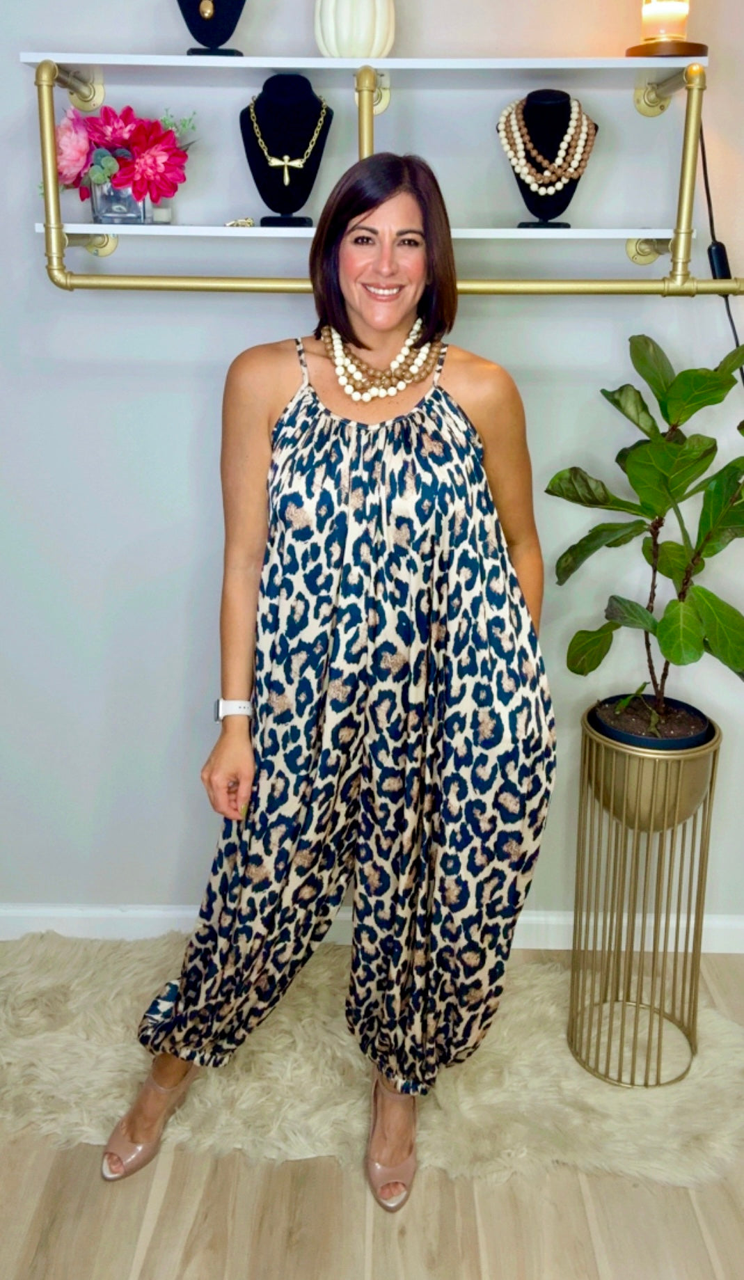 Italian Aladdin Cheetah Print Jumpsuit